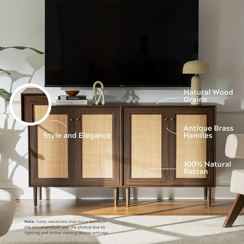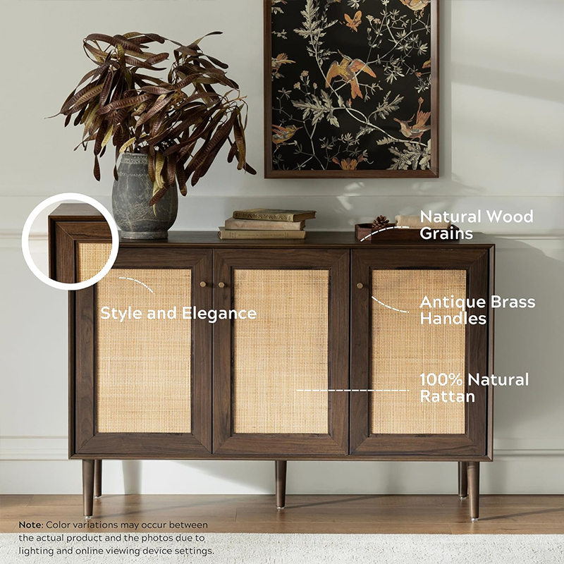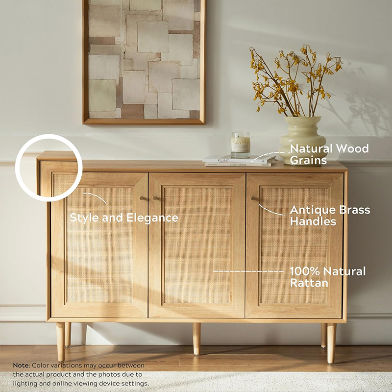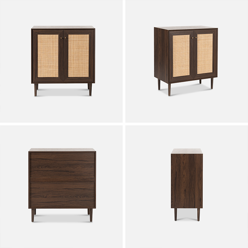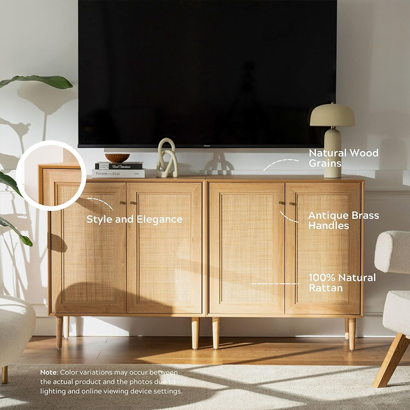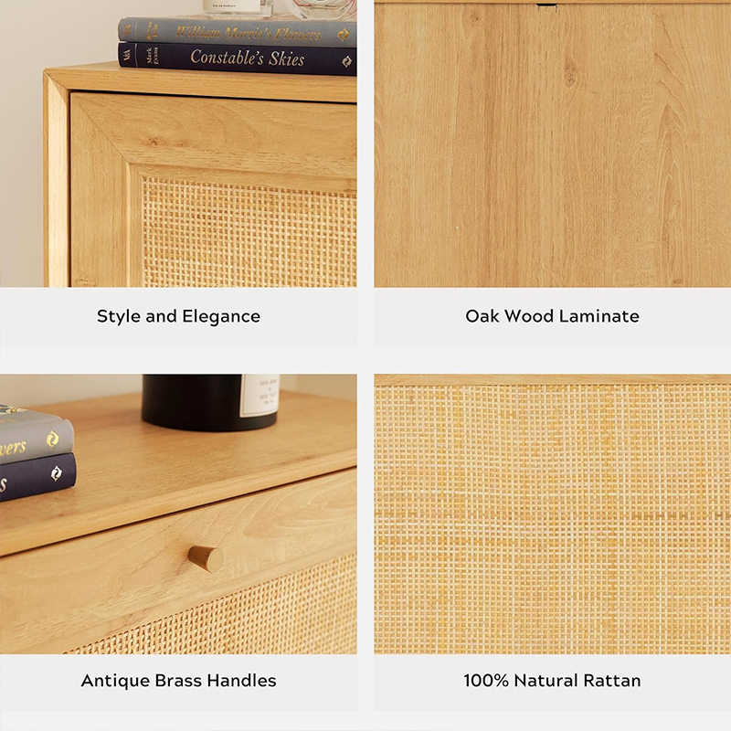 | Materiale | Massivt træplade med MDF-finish og ægte rattanbeklædning |