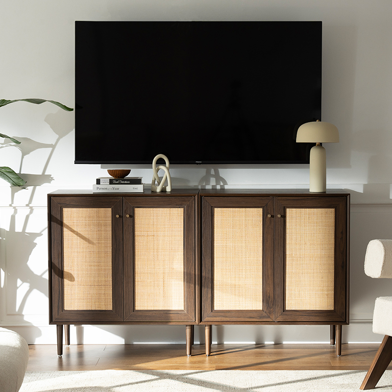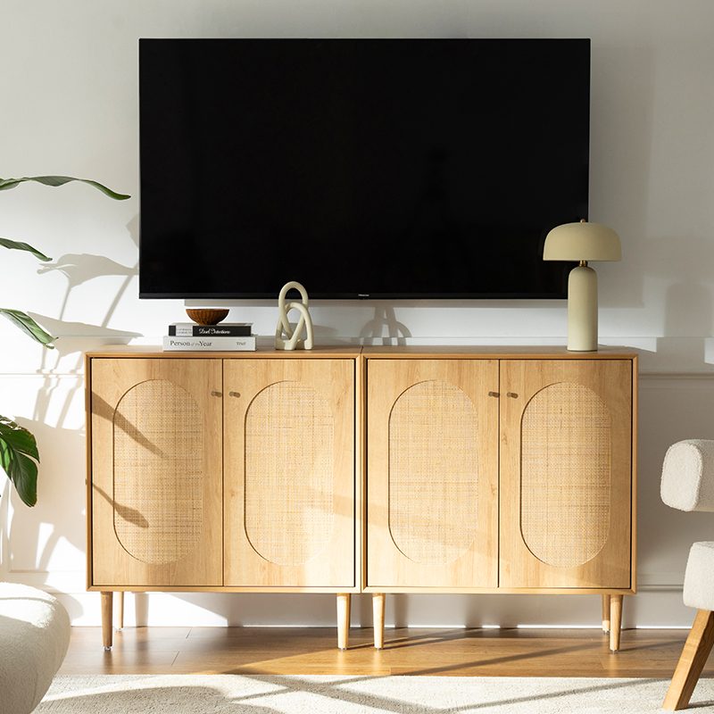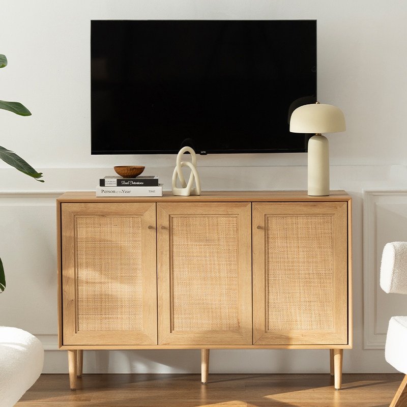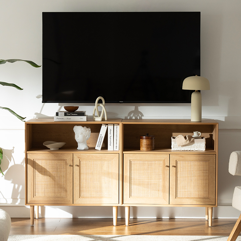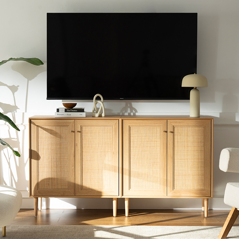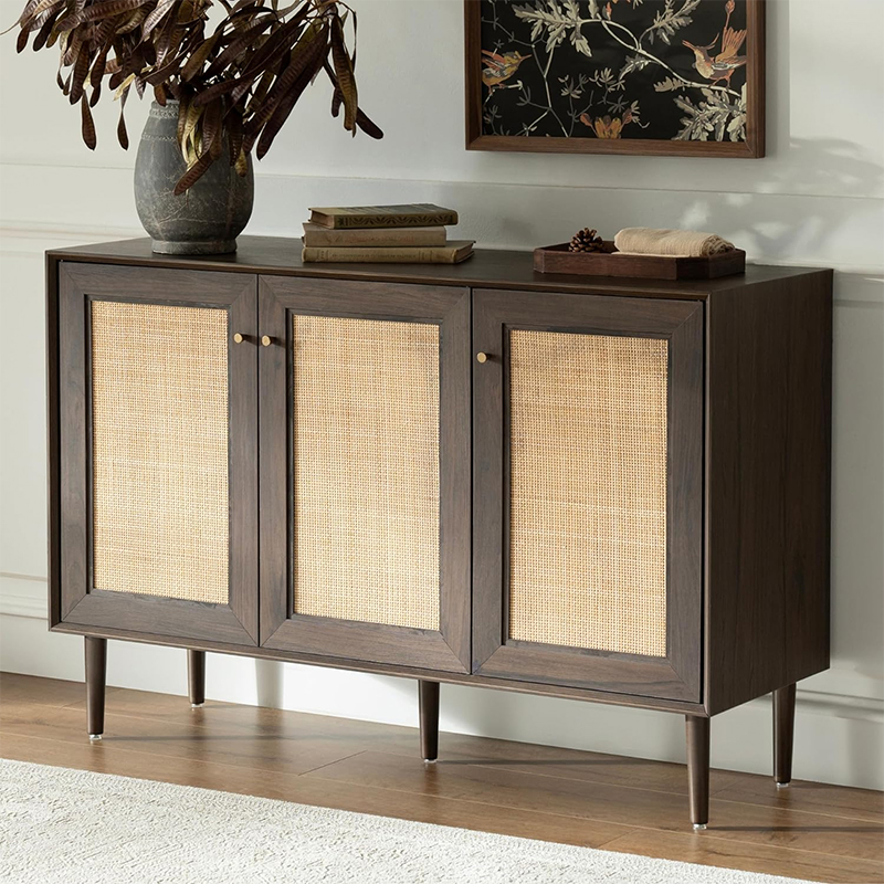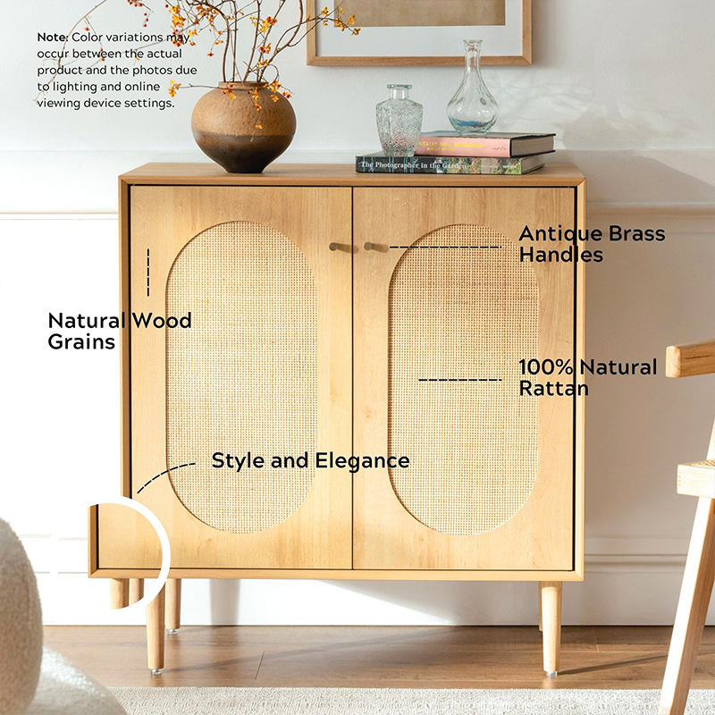 | Materiale | Massivt træplade med MDF-finish og ægte rattanbeklædning |